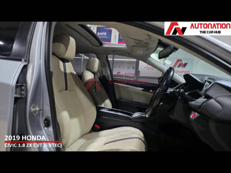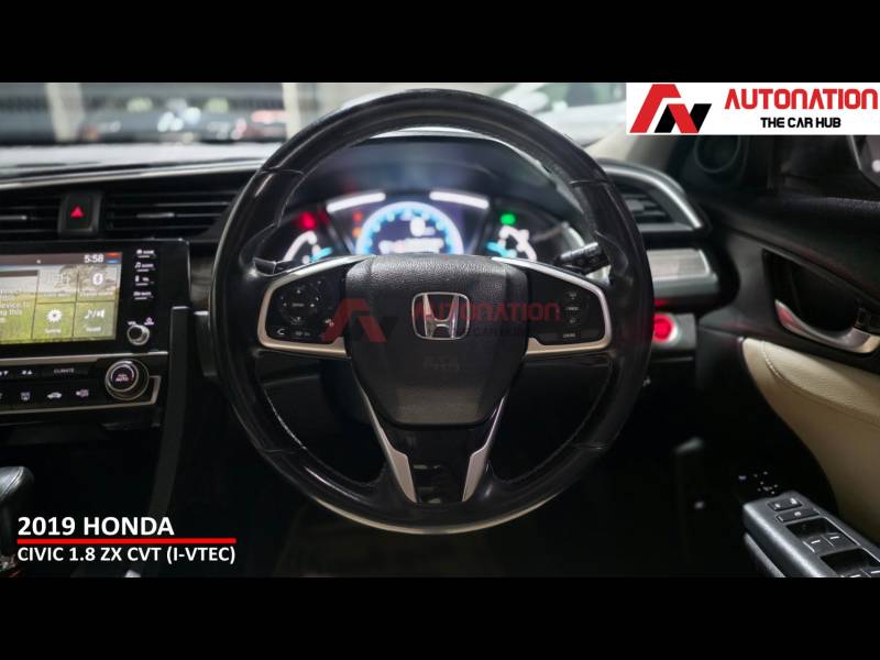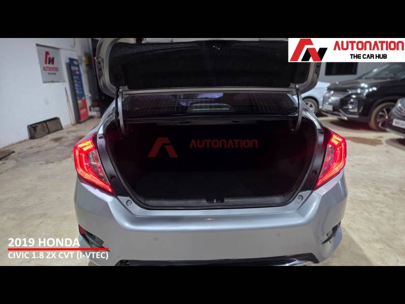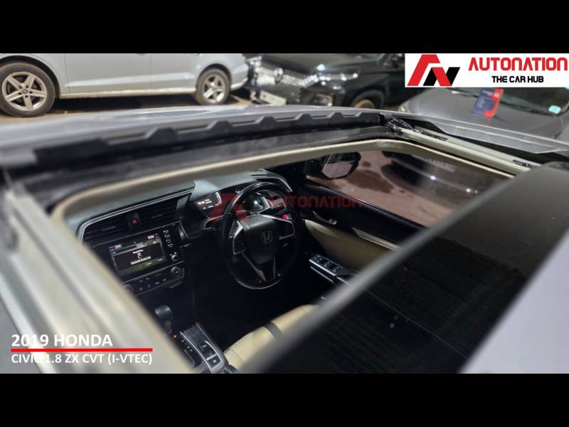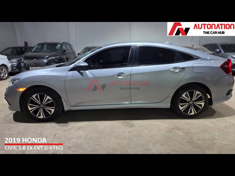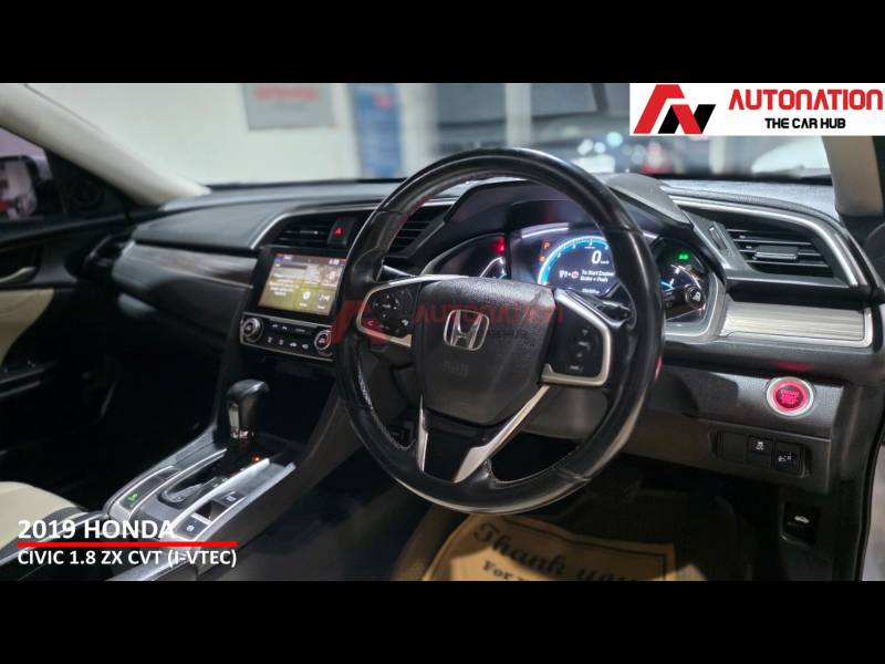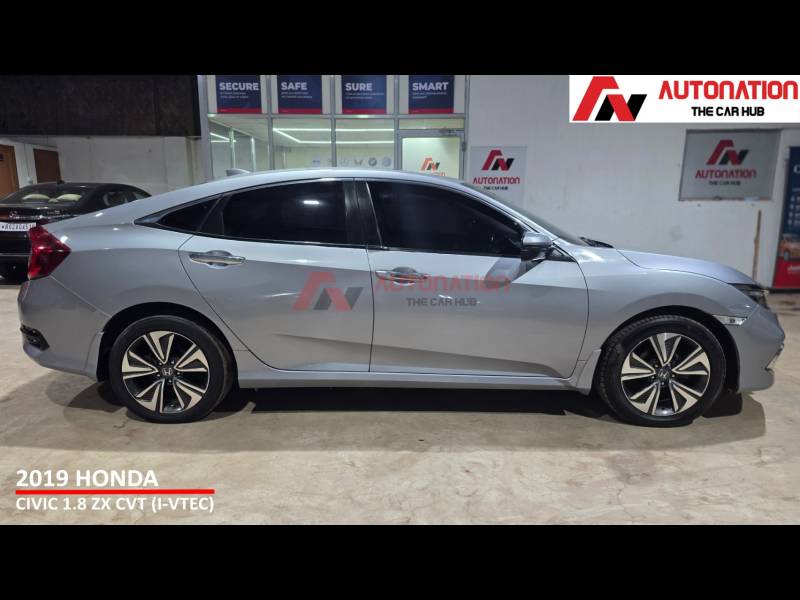 This is a car that still turns heads on the road and carries a strong road presence even today. Powering this Civic is Hondas proven 1.8-litre i-VTEC petrol engine, paired with a smooth CVT automatic gearbox. The result is refined performance, seamless acceleration, and effortless city driving, along with relaxed and stable highway cruising. Its a sedan that feels equally comfortable behind the wheel, whether youre commuting daily or heading out on long drives. Step inside, and the Civic welcomes you with a driver-focused cockpit and a premium cabin feel. Being the top-of-the-line ZX variant, it comes loaded with features such as a full digital instrument cluster, sunroof, touchscreen infotainment system, leather seats, dual-zone climate control, cruise control, keyless entry, push-button start, and paddle shifters everything youd expect from a premium sedan. When it comes to safety, Honda has left no compromises. multiple airbags, ABS with EBD, traction control, stability assist, hill-start assist, and a strong body structure, ensuring peace of mind for you and your family. With 56,000 well-maintained kilometres, Hondas legendary reliability, and West Bengal Road Taxes paid till April 2029, this Civic offers exceptional value in the pre-owned market. Low maintenance, strong resale, and a premium driving experience make it a smart long-term choice. To sum it up, this 2019 Honda Civic 1.8 ZX CVT is the perfect combination of sporty design, refined performance, premium comfort, and everyday practicality.